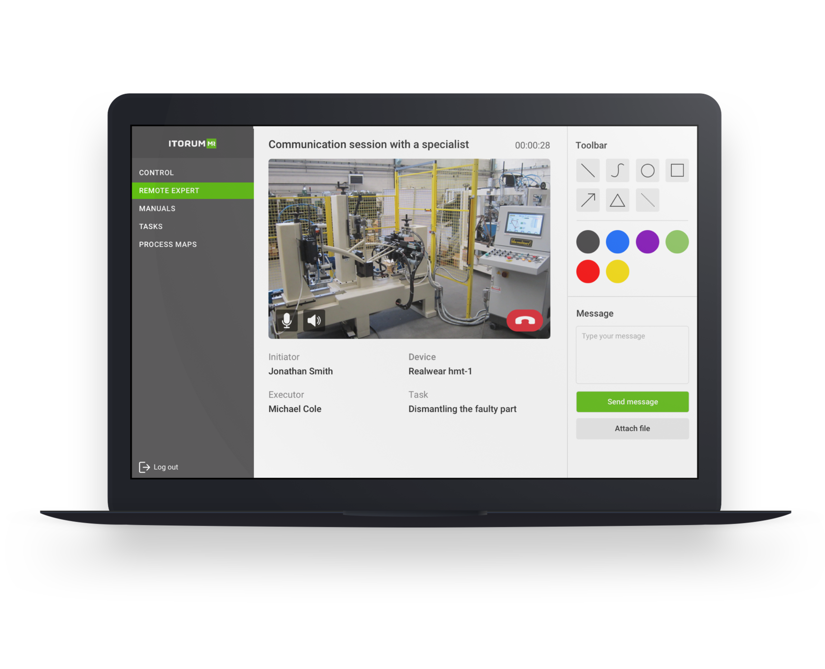 It is designed for technicians working in production and remote experts through augmented reality glasses.